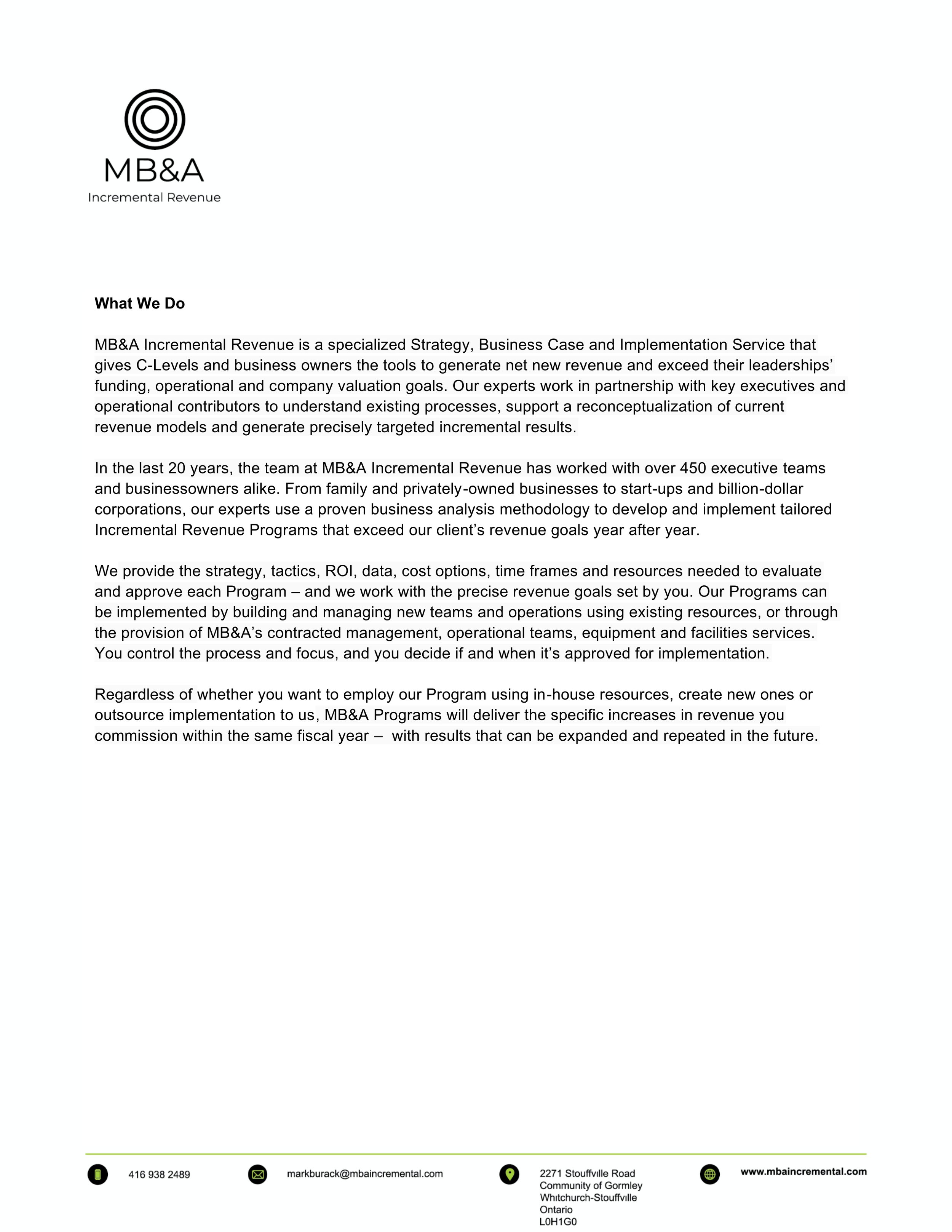 A long-form sales asset that communicates process, ROI, and an engagement model to C-level prospects.