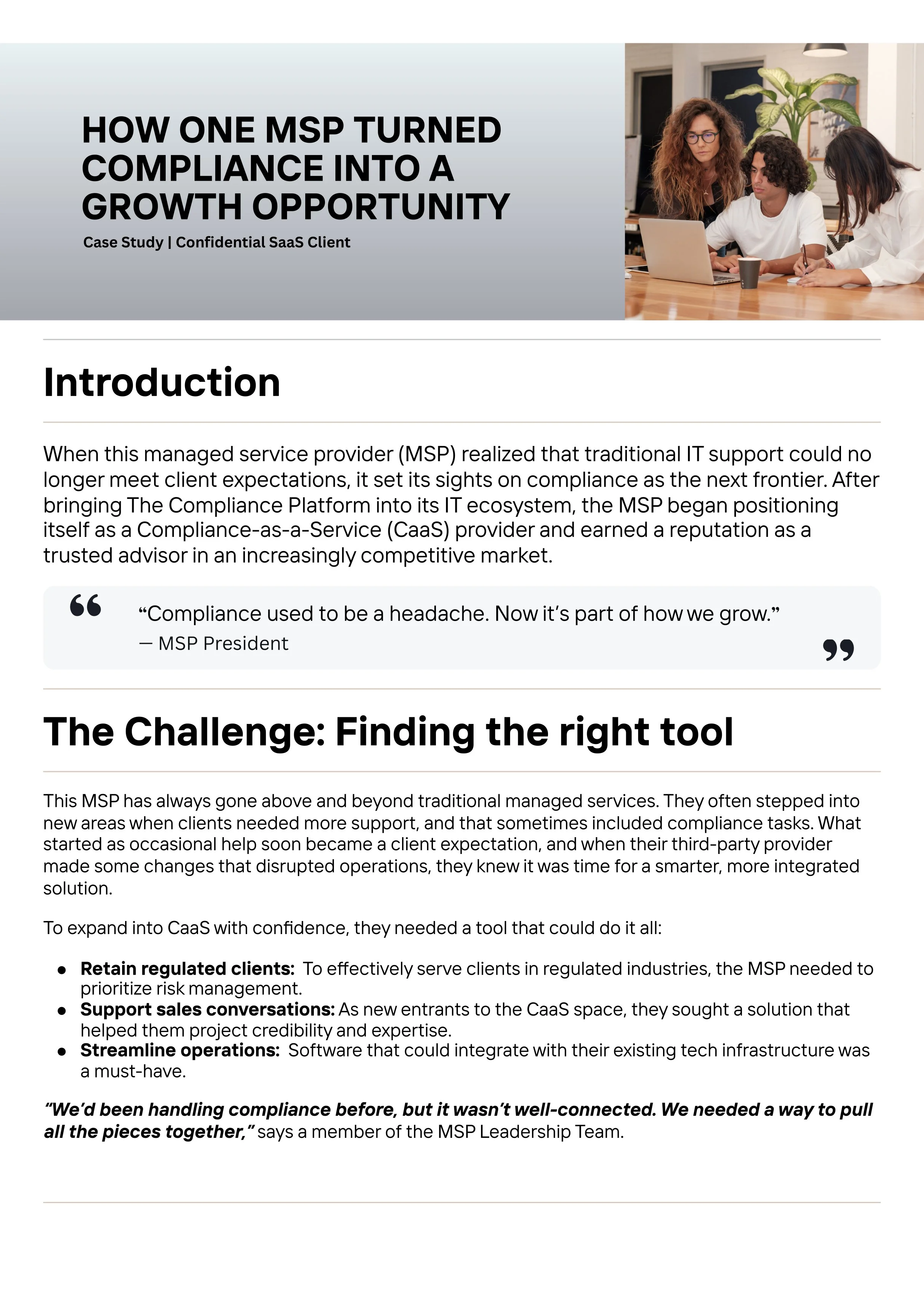 The results-driven story of an MSP investing in compliance software to build trust and revenue.
